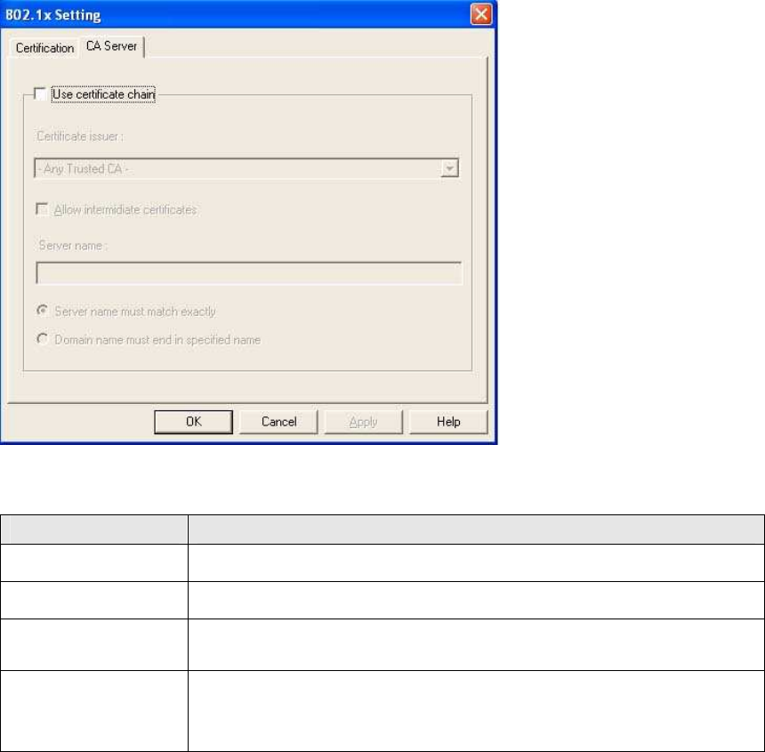 Table 4-7 Authentication: 802.1x Setting: CA Server