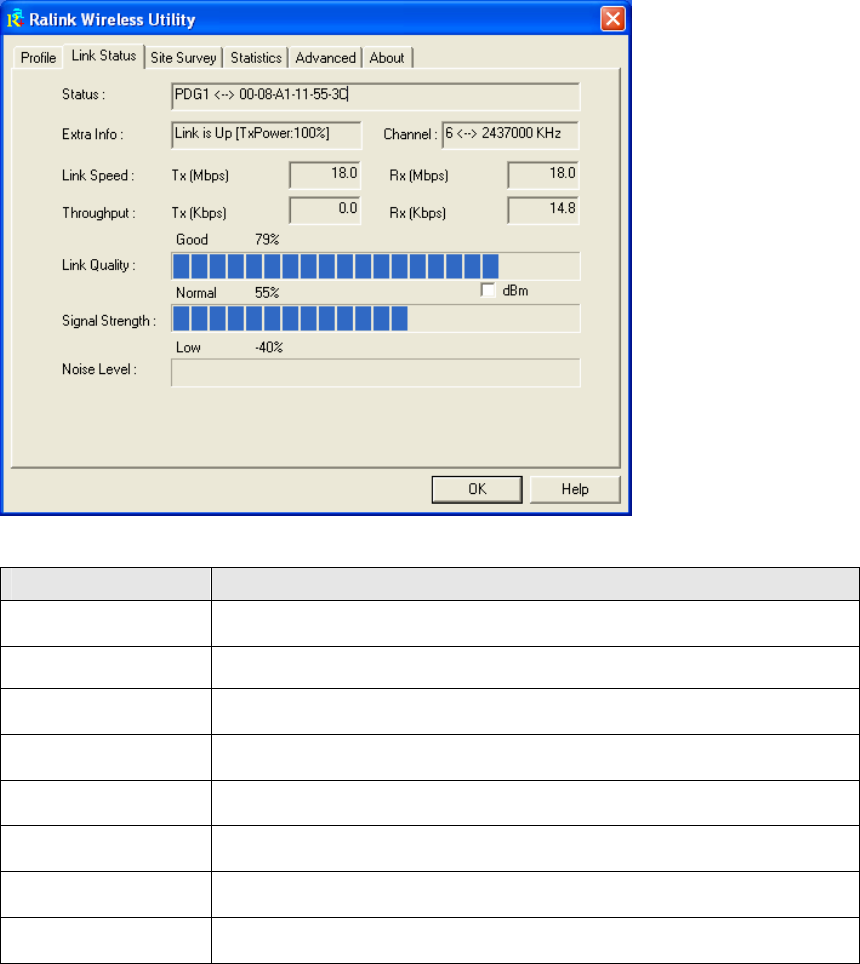 The Link Status provides the link information of the Wireless-G USB Adapter with