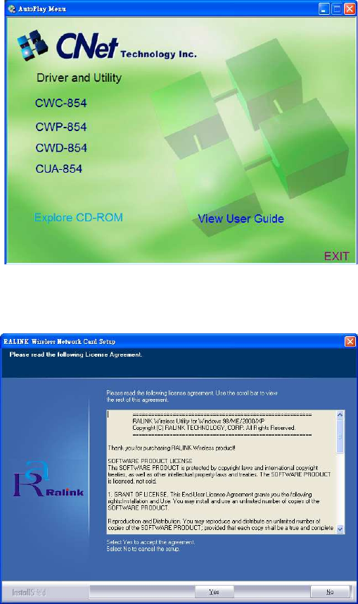 - Click on CUA-854 to install driver/utility for your Long Range Wireless-G USB Adapter.