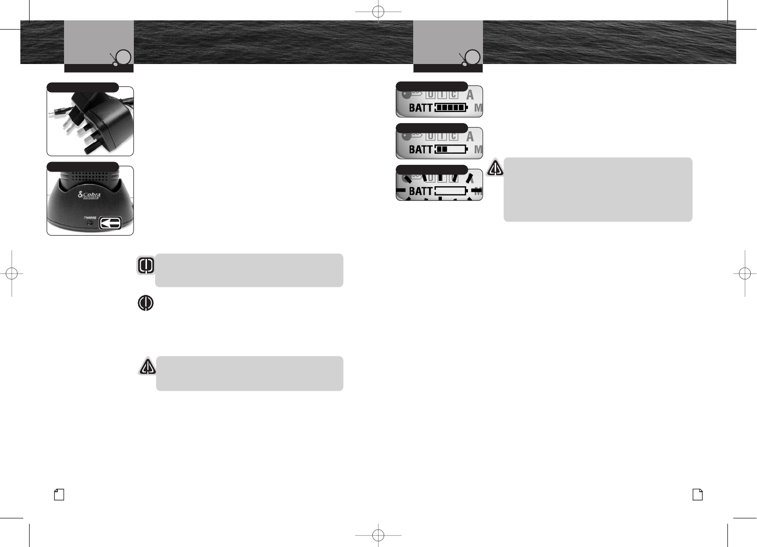Use only the drop-in charger provided by Cobra