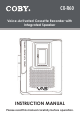 FEATURES Voice Activated Recording System Integrated Omni-Directional Microphone High-Output Speaker LED Recording Indicator Headphone Jack for Private Listening Microphone Jack for Optional External Microphones Requires 2 x “AA” Batteries (not included) www.cobyusa.
