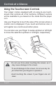 Controls at a Glance Using the Touchscreen Controls Your player comes equipped with an easy-to-use touchscreen that controls all of its functions. Different controls will be available to you based on the mode that the player is in. Use your finger tip to touch the area of the screen where a control icon is displayed. If you touch and hold an icon, it will register as a continuous button press.