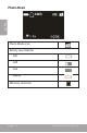 Photo Mode Setup Enter the Photo Mode Setup menu to adjust image size, set the self-timer, or change photo settings. English Feature Description Hotkey Quality Setup Adjust the image quality. Finer quality images will use more memory. -- Image Size Take photos at a lower resolution to maximize the video camera’s available memory. White Balance Adjust the white balance to accommodate different lighting conditions. EV Setup Adjust the exposure to accommodate different lighting conditions.