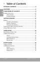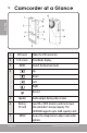 ÂÂ Table of Contents Package Contents.........................................................4 Features............................................................................5 English Camcorder at a Glance ..............................................6 Display Overview..................................................................................8 Video Mode..................................................................................8 Playback Mode..........................................