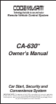 Remote Vehicle Control System CA-630 TM Owner's Manual Car Start, Security and Convenience System IMPORTANT NOTE: The operation of the IV-F65 as described in this manual is applicable to most vehicles. However, due to the engine type and configuration of some vehicles (i.e. diesel engines), some functions AND/OR SAFETY PRECAUTIONS may not apply. Please see your installing dealer for more information.