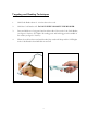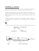 Targeting and Reading Techniques 1. Hold Code Reader about 2 - 4 inches above the code. 2. Hold the Code Reader still - DO NOT SWIPE OR MOVE THE READER. 3. Press and hold one of triggers found on either side of the neck of the Code Reader (see figure 1.2 below). For rapid 1-D reading press and hold trigger in the middle of the reader (see figure 1.3 below). 4. When the code has been read and decoded, the reader will beep and the LED lights in the Code Reader’s head will falsh on and off. Figure 1.