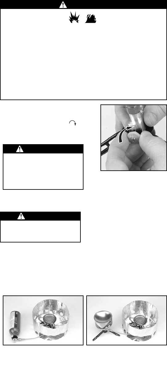• Always attach or detach fuel canisters outdoors; never while stove is