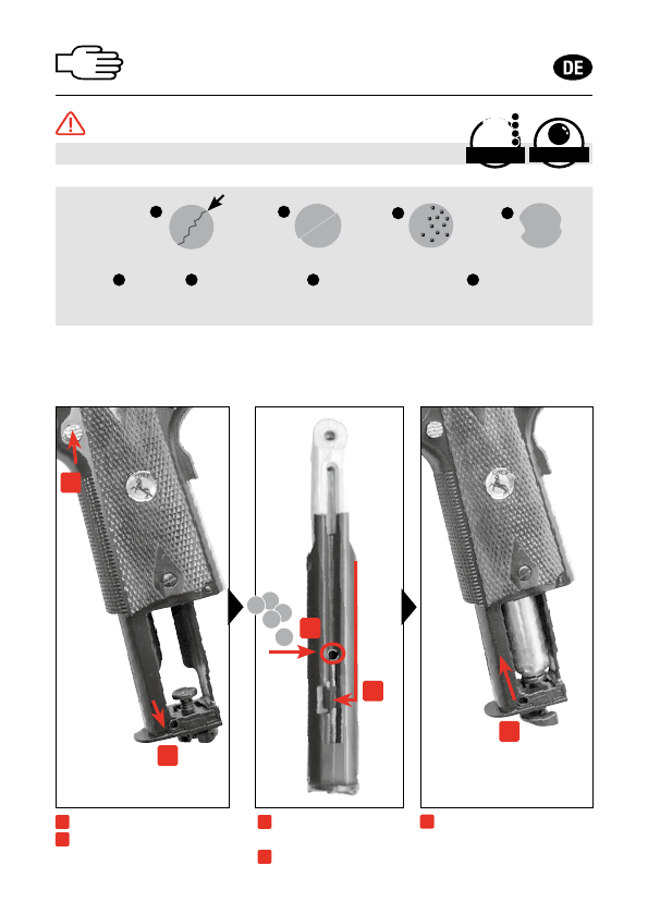 Verwenden Sie nur einwandfreie Kugeln: Verwenden Sie auf keinen Fall folgende