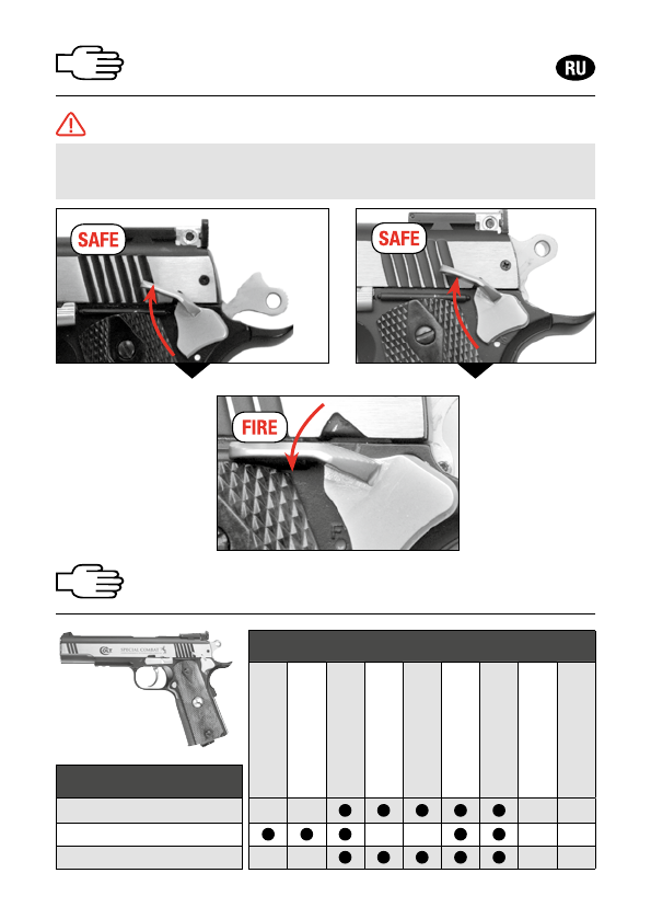 • Обращайтесь с оружием, только поставив его на предохранитель.