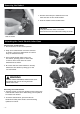 Removing the Basket 1. Unhook and unloop the fasteners from the front and back of the stroller basket. 2. Slide the basket off the basket frame. CAUTION Do not place more than 10 lbs. in the basket. Remove all items from the basket before folding the stroller. Side of stroller Attaching the Combi Shuttle Infant Seat Attaching the Combi Shuttle 1. Recline backrest to the lowest position. 2. Snap carrier attachments onto both armrests as shown. Pull up on attachments to confirm they are attached securely.