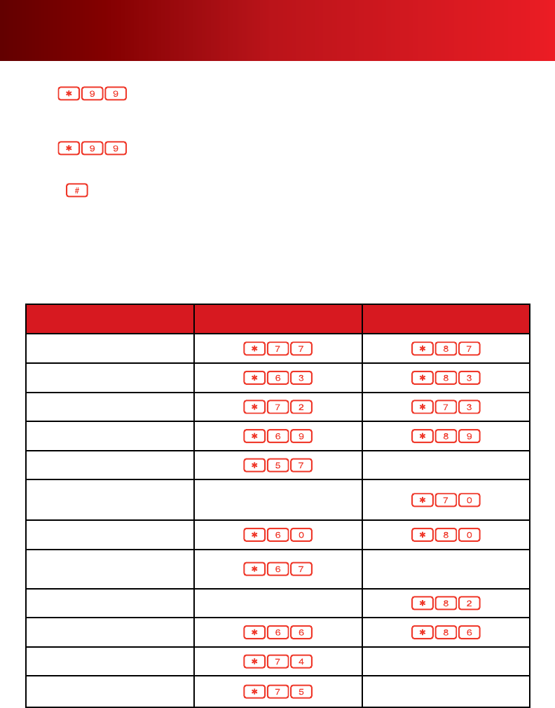FEATURE TO ACTIVATE: TO DEACTIVATE: