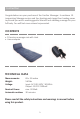 Instruc�on Congratula�ons on your purchase of the Comfier Massager. It combines 10 Invigora�ng Massage motors and four hea�ng pads target four hea�ng zones to provide you with a soothing gentle Warmth and vibra�ng massage for your full body. You will feel more relaxed rejuvenated. CONTENTS • 10 motors massage mat with Heat • Home adapter TECHNICAL DATA Measurements: Weight: Voltage: 69 x 24 inches 5.65lbs Input: AC 100-240V ~50/60Hz Output: 12VDC 2500mA Nominal Power: max.