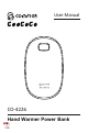 INSTRUCTIONS FOR USE Power On the Hand Warmer: Press control bu�on to turn on the hand warmer, the screen will show the remaining power. Turn On Hea�ng func�on: Press and hold the control bu�on for 4 seconds to ac�vate the hea�ng func�on,a small "Heat" word will be shown on the screen.; Con�nuous short press to select the hea�ng level, cycle through Level 01 ~03. Hea�ng level “01” - the temperature will reach to 45℃(113F) . Hea�ng level "02" - the temperature will reach to 50℃(122F).