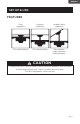 ENGLISH SET UP & USE FEATURES Flush Installation Downrod Installation Vaulted Ceiling Installation For normal ceilings For normal ceilings May require a longer downrod (sold separately) CAUTION To reduce the risk of injury to persons, the fan must be installed so that the blades are at a height greater than 7 feet (2.1 meters) above the floor. This fan is designed for indoor use only.