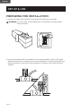 FRANÇAIS CONFIGURATION ET UTILISATION PRÉPARATION POUR L’INSTALLATION 1. Déballez et inspectez soigneusement le ventilateur pour vous assurer que tout le contenu est inclus. ATTENTION: Coupez l’alimentation au niveau du disjoncteur ou du panneau de fusibles pour éviter tout risque de choc électrique. 2. Utilisez une boîte de sortie en métal homologuée adaptée au support de ventilateur (conçu pour 35 lbs (15.