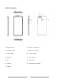 GED AT A GLANCE 1 - Earphones Jack 8 - Volume+ Control Key 2 - Proximity sensor 9 - Volume- Control Key 3 - Front Camera 10 - Power On/Off 4 - Receiver 11 - Rear Camera 5 - Mic 12 - Flash Light 6 - USB Port 13 - Fingerprint Key Sensor 7 - Speaker 3