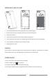 INSTALLING A SIM /SD CARD 1. Turn off the mobile phone and unplug the external power supply. 2. Remove the back cover using the groove on the side of the phone. 3. Remove the battery. 4. Insert the SIM card with Gold-colored contacts facing down. 5. Insert the optional SD card (not included) with the Gold-colored contact facing down. 6. Insert the battery making sure the connectors align. 7. Replace the back cover.