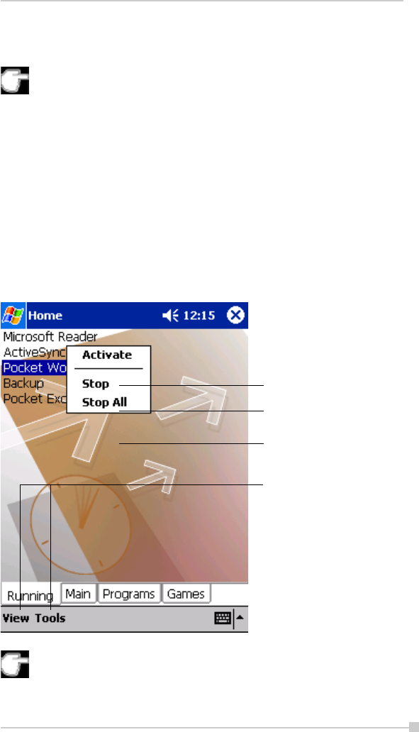 other than the application names displayed in the Running tab. In