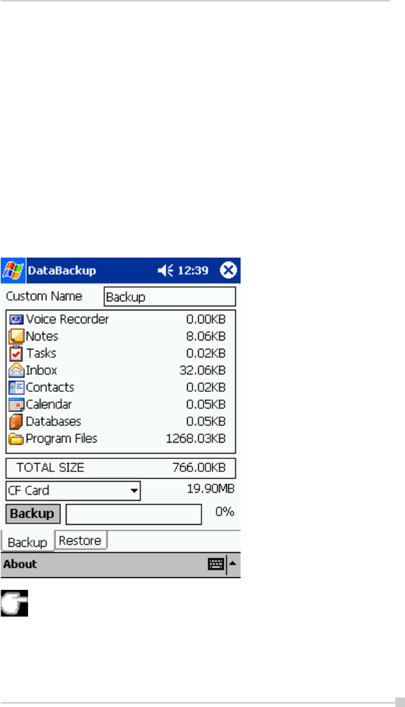 2. Tap Start, Programs, and then DataBackup to display the DataBackup