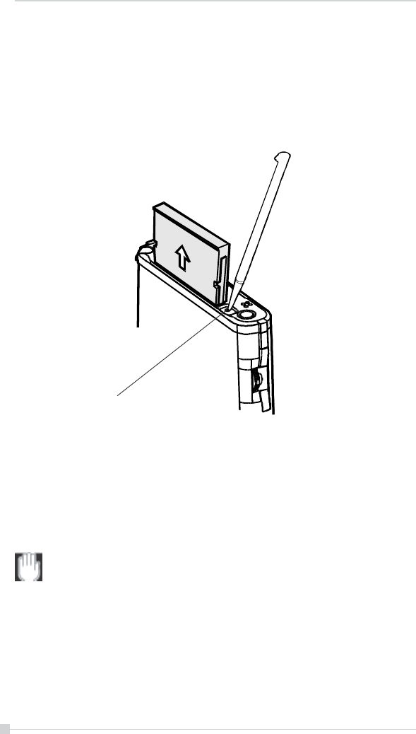 2. Lightly press down the release button with the stylus. The button will