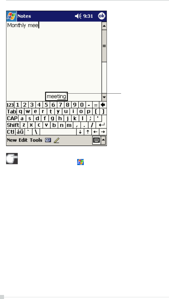 2. On the soft keyboard that is displayed, tap the keys with your stylus.