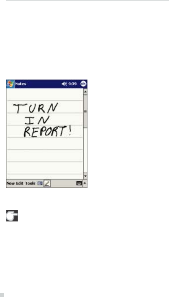 • Tap the Pen button to switch to writing mode. This action displays lines