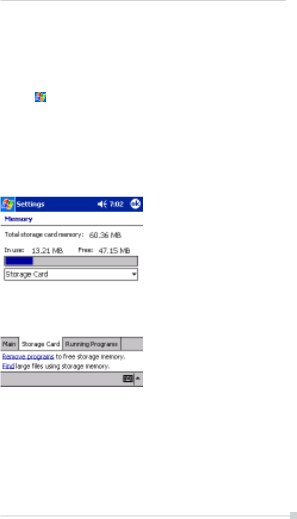 1. Tap and then Settings. On the System tab, tap Memory to dis-