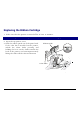 Replacing the Ribbon Cartridge 1. Make sure that the printer is turned off for at least 15 minutes. Pay attention to the print head because it becomes hot during operation. 2. Open the top printer cover. R ib b on G uide 3. Slide the ribbon guide out of the print head. If the color kit is installed on the printer, unlock the white slider pressing and holding the lever on the slider towards the back of the printer and contemporaneously lifting the slider off the color mechanism.