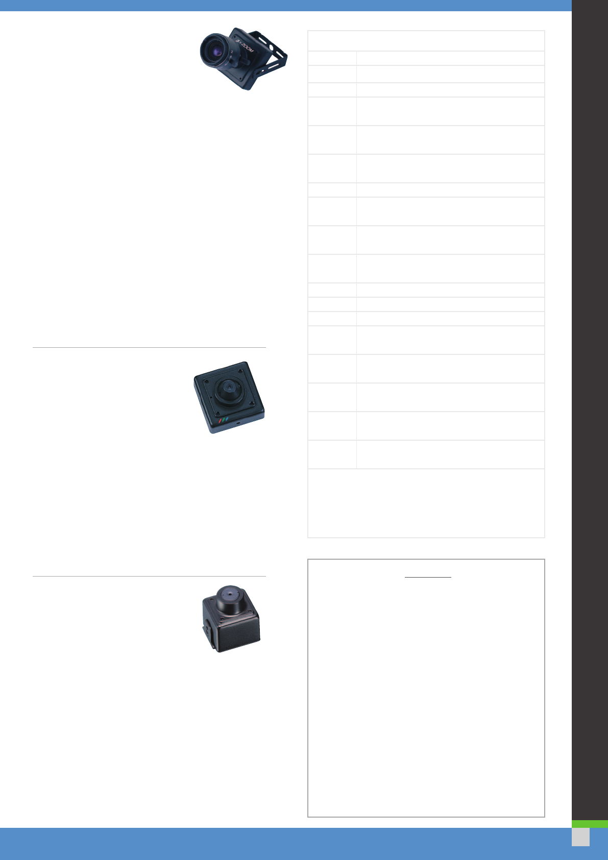 1/3” 480 line, 1.0 lux, C/CS lens mount, 38mm sq cased board, 9-