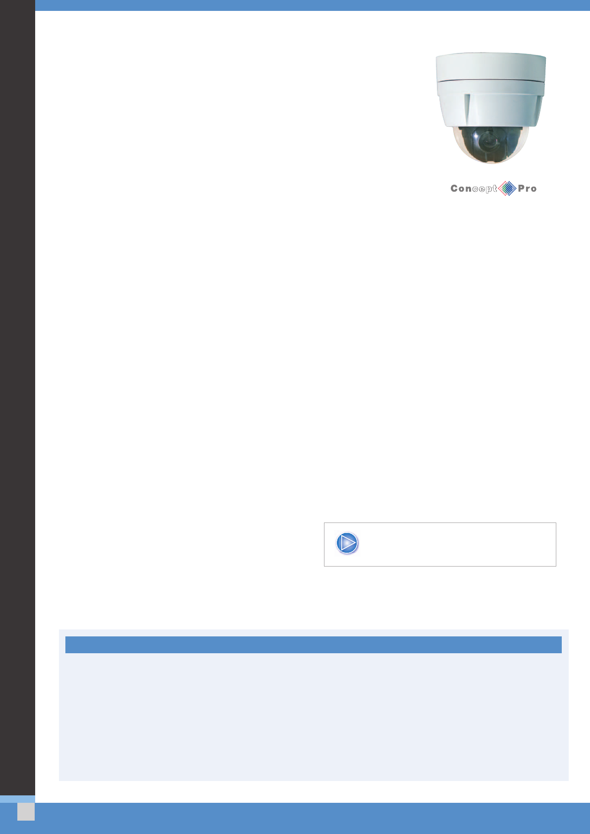 The speed dome features an 10x optical zoom, autofocus lens and a 1/4 inch Sony ExView HAD