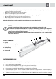 PL • • • • • Nie należy okręcać urządzenia przewodem zasilającym. Urządzenia należy używać tylko w pomieszczeniach. Nie wolno zanurzać przewodu zasilającego, wtyczki ani samego urządzenia w wodzie ani innych cieczach. Należy używać wyłącznie akcesoriów zalecanych przez producenta. Nie należy podejmować prób samodzielnej naprawy urządzenia. W tym celu należy skontaktować się z autoryzowanym serwisem. W przypadku nieprzestrzegania wskazówek producenta, ewentualne naprawy, nie będą uznawane jako gwarancyjne.