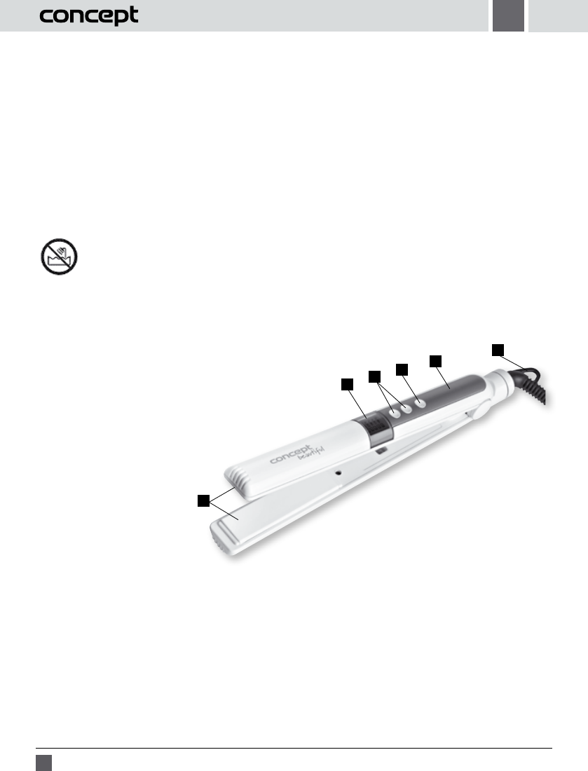 Neizmantojiet ierīci vannu, izlietņu un citu ar ūdeni piepildītu tvertņu tuvumā.