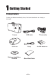 1 Getting Started Package Contents Contact your dealer immediately if any of the items listed below are missing or TV OUT USB damaged.