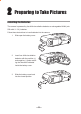 Preparing to Take Pictures Low Battery Indicator The low battery indicator appears on the LCD monitor when the batteries near depletion. Change the batteries when the low battery indicator appears. NOTES: • Do not use manganese batteries. Manganese batteries cannot supply sufficient power to support camera operation. • Replace all batteries at the same time. Never mix old and new batteries. • Remove batteries from the camera if you do not plan on using it for more than two weeks.
