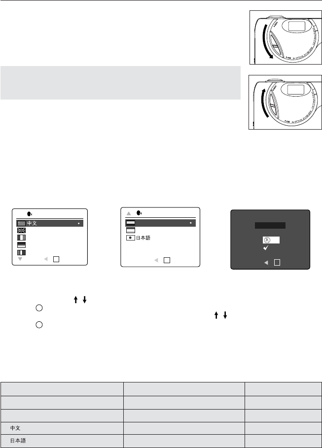 2. Press the joystick , to highlight the language you would like to use.