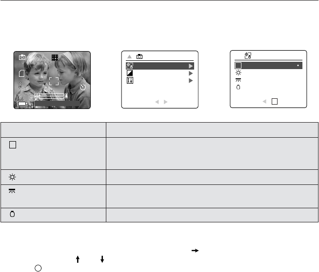 1. When White Balance is highlighted, press the joystick to enter its submenu.