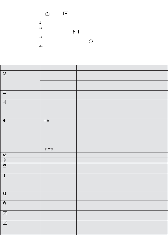 Language , Sets the language in your camera.