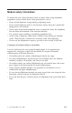 Modem safety information To reduce the risk of fire, electrical shock, or injury when using telephone equipment, always follow basic safety precautions, such as: v Never install telephone wiring during a lightning storm. v Never install telephone jacks in wet locations unless the jack is specifically designed for wet locations. v Never touch uninsulated telephone wires or terminals unless the telephone line has been disconnected at the network interface.