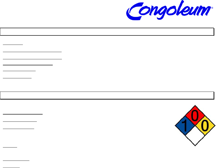 describedherein,CongoleumCorporationcannotguaranteethatthesearetheonlyhazardsthatexist.