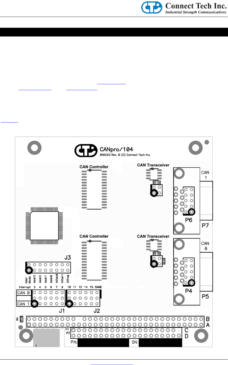 Figure 1 shows the locations of various hardware components found on the CANpro/104.