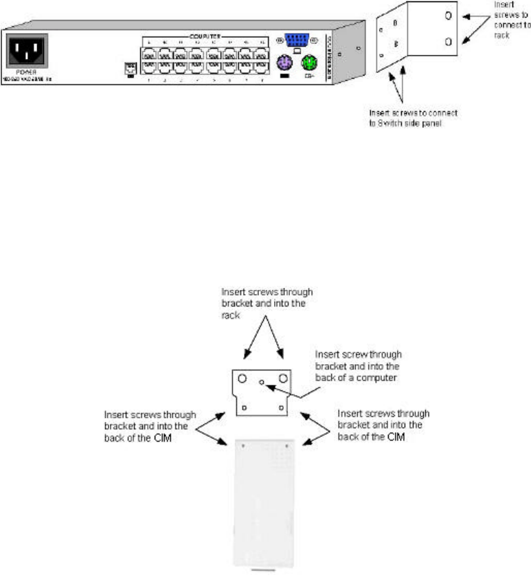 Use the L-shaped brackets and screws provided to mount the CAT5 KVM on a server rack as