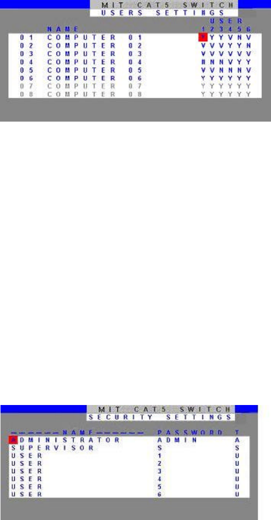 • Y – Full access to a particular computer. Plus access to the F4, F5 and F6 OSD functions