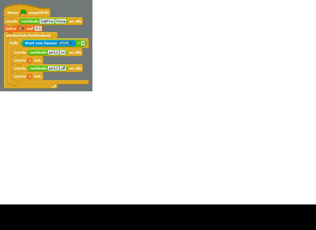 this LED switches off. The LED is only off for a moment, while the script starts the next run of the loop. This way, a flickering light results, in