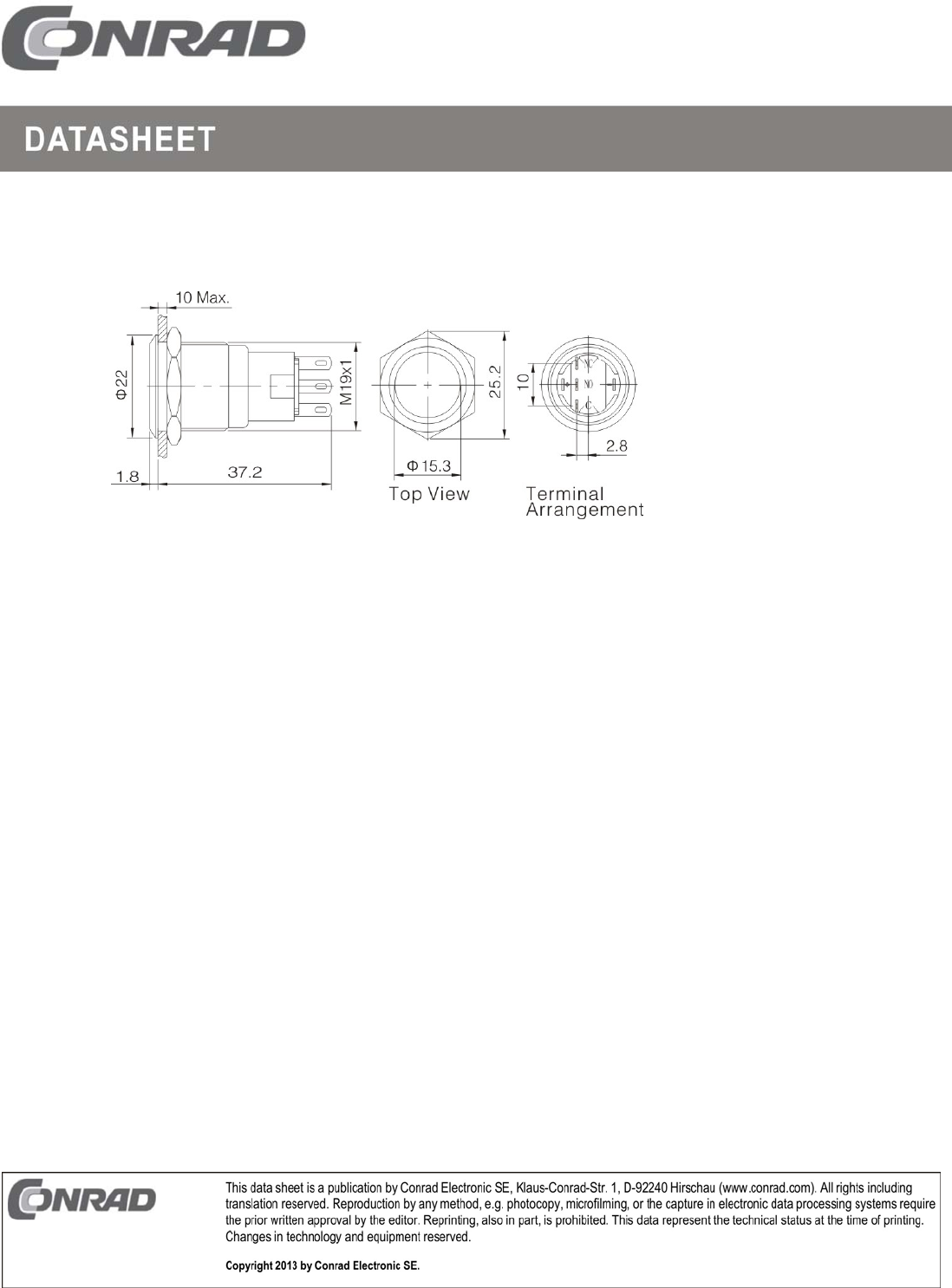 Ф19mm,1NO1NC, Momentary. Version 6/14