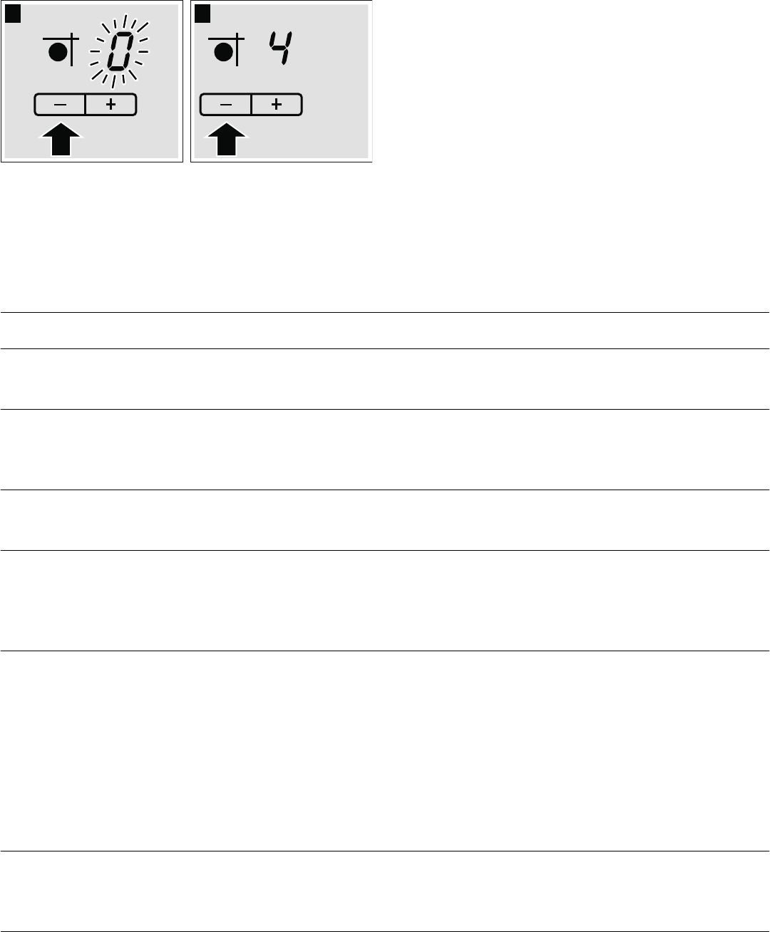- 4. Symbol + sooft berühren, bis im Display die gewünschte Einstellung erscheint.