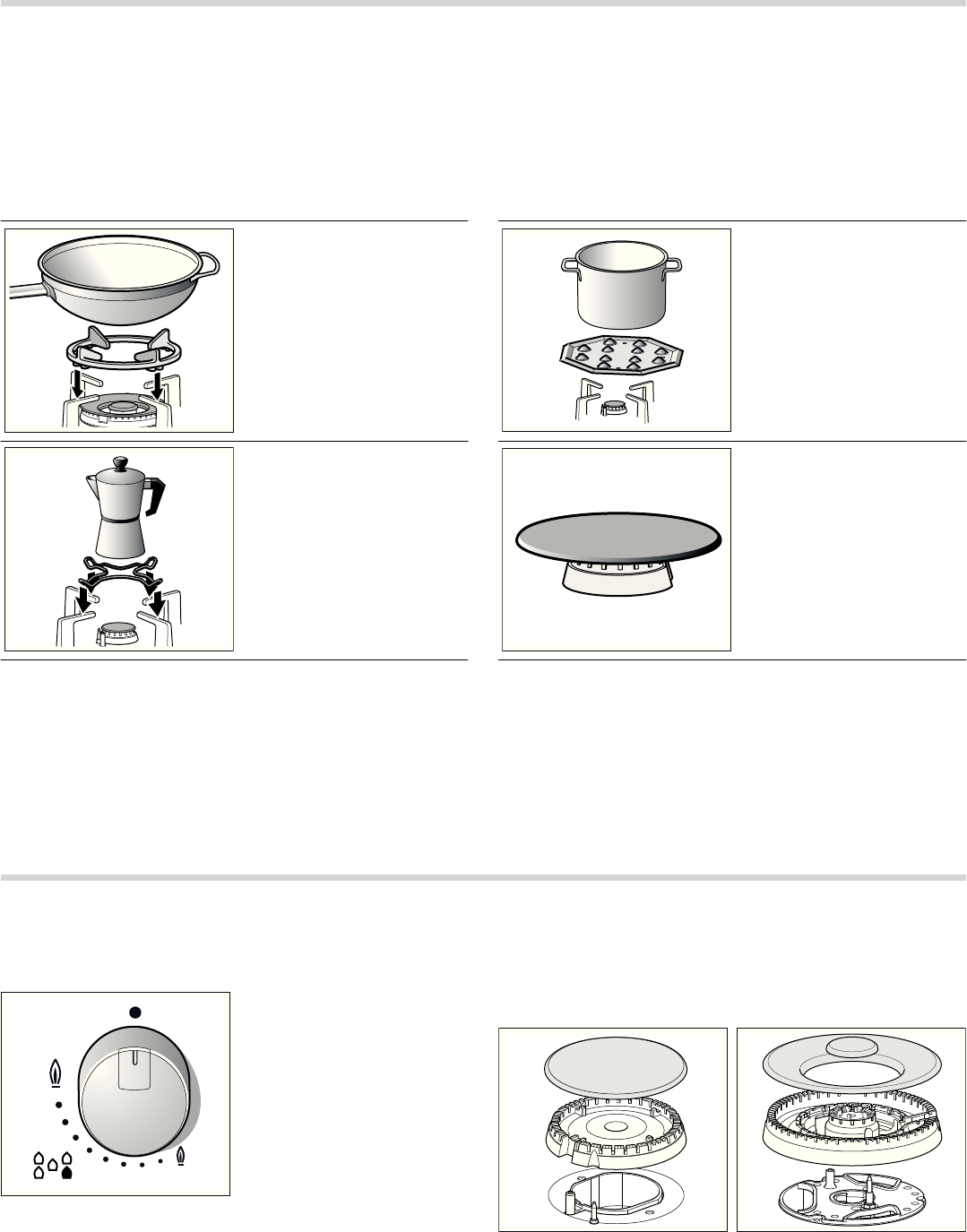 - Cihazın doğru çalıştırılabilmesi için ızgaraların ve tüm brülör parçalarının doğru yerleştirildiğinden emin olunmalıdır. Brülör kapaklarının yerini değiştirmeyiniz.