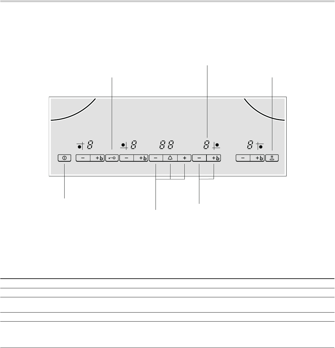 - En appuyant sur n'importe quel symbole, l'indicateur s'éteint. Il est alors possible de régler à nouveau la zone de cuisson.
