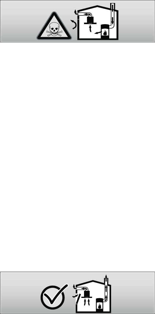 - Always ensure adequate fresh air in the room if the appliance is being operated in exhaust air mode at the same time as room air-dependent heat-producing appliance is being operated.