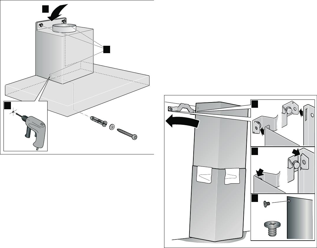 - 4. De bevestigingshaak voor het afdekpaneel van de schouwkap vastschroeven. ©