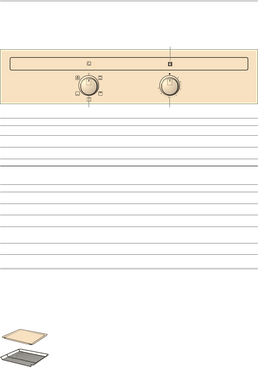 - Die Angaben in der Tabelle beziehen sich auf das Einschieben in den kalten Backofen.